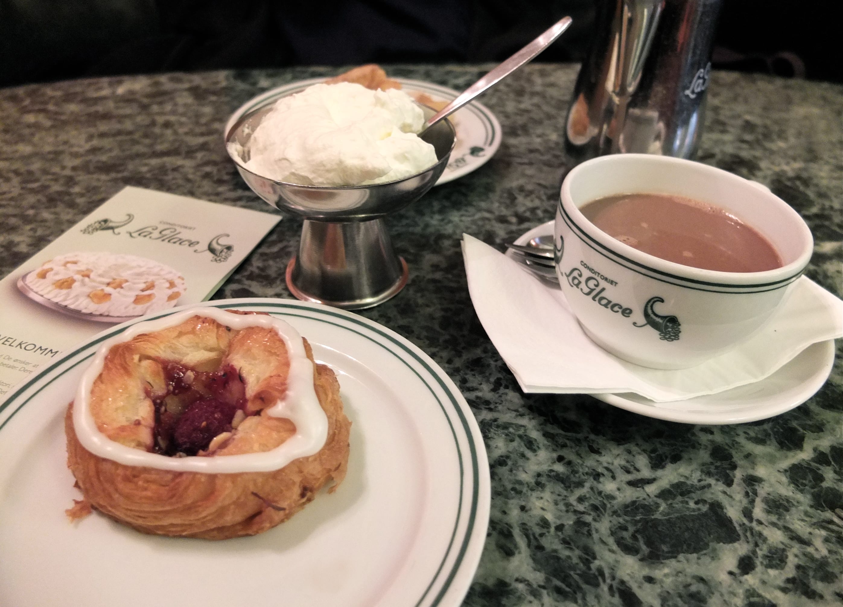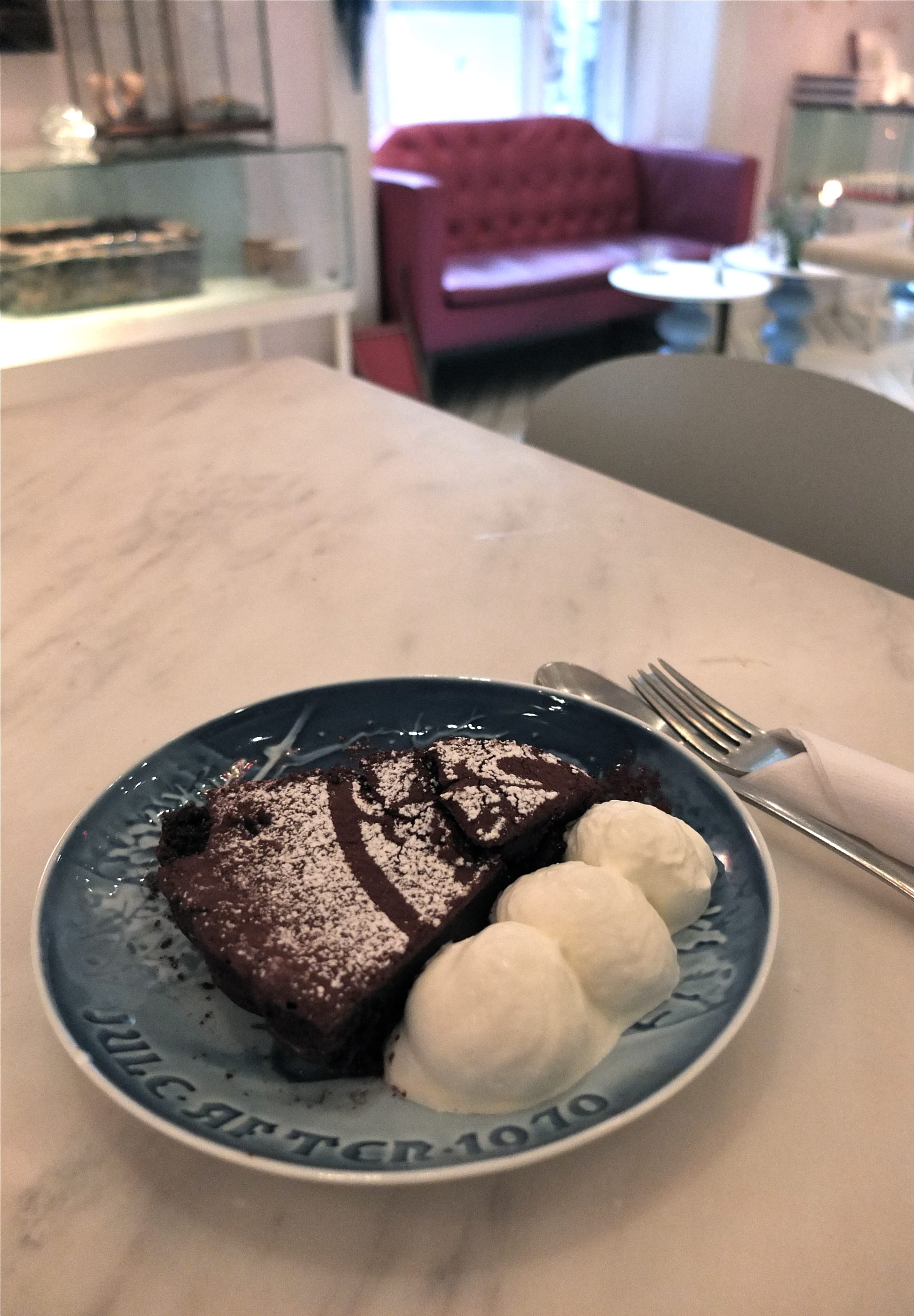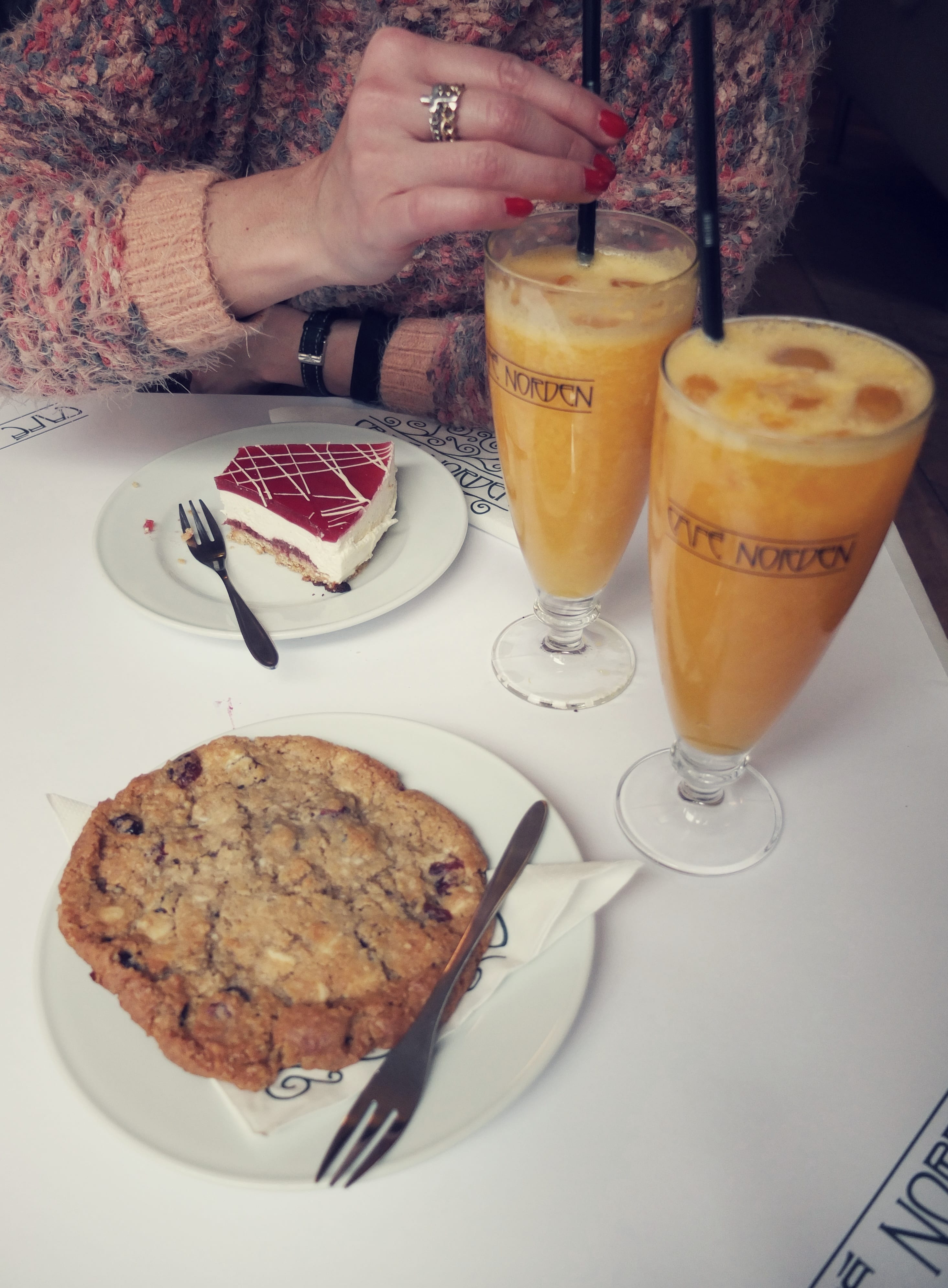 1) Le Café Norden (Ostergade,61) : situé dans le même bâtiment que la boutique HAY (dont je vous ai parlé ici : Copenhague #2), l’endroit est grand. Préférez le 1er étage au rez de chaussée, des alcôves avec de gros coussins permettent de s’isoler. L’adresse est aussi bien pour déjeuner, faire un 4h ou diner. Nous avons opté pour la pause sucrée !