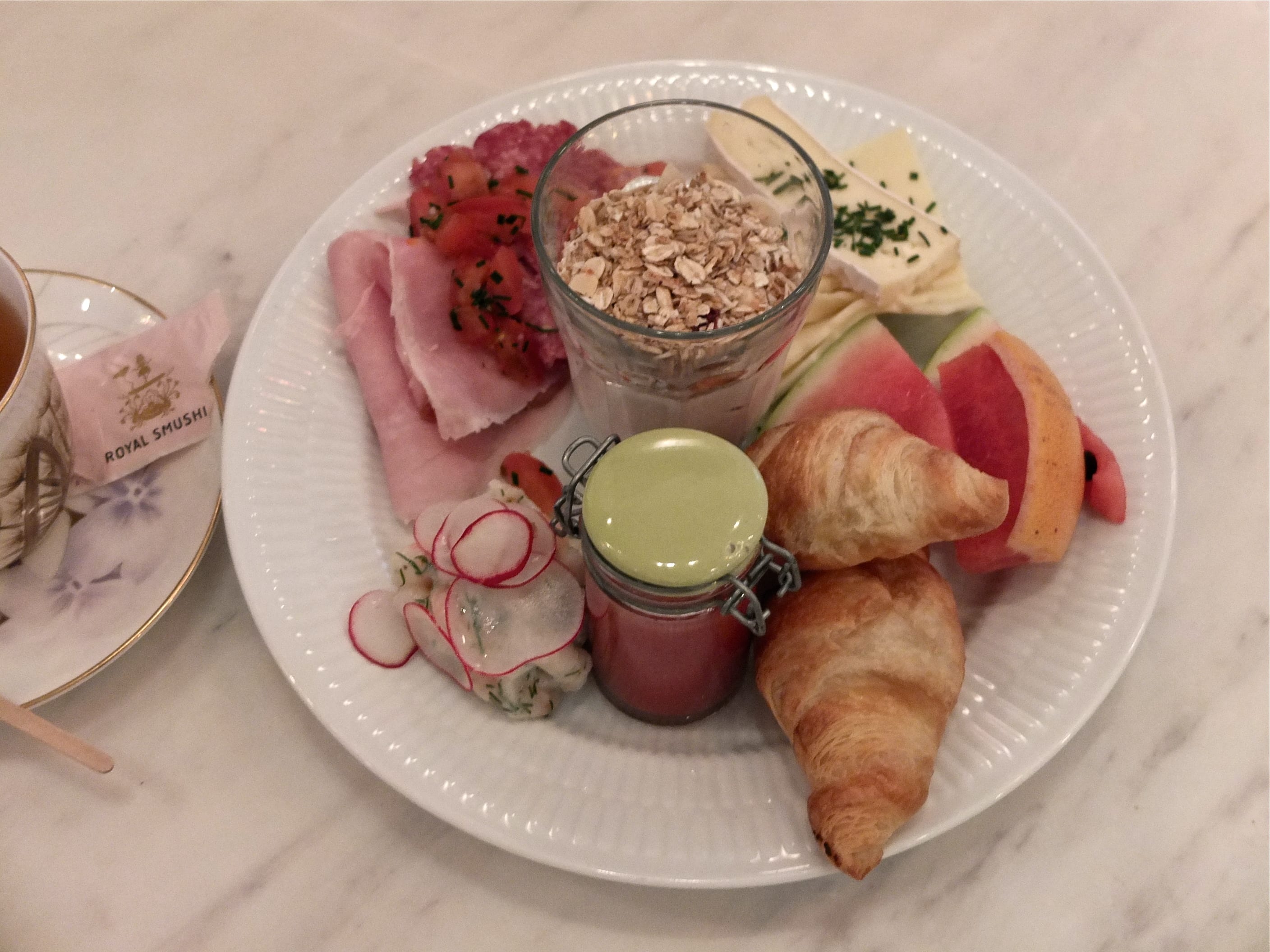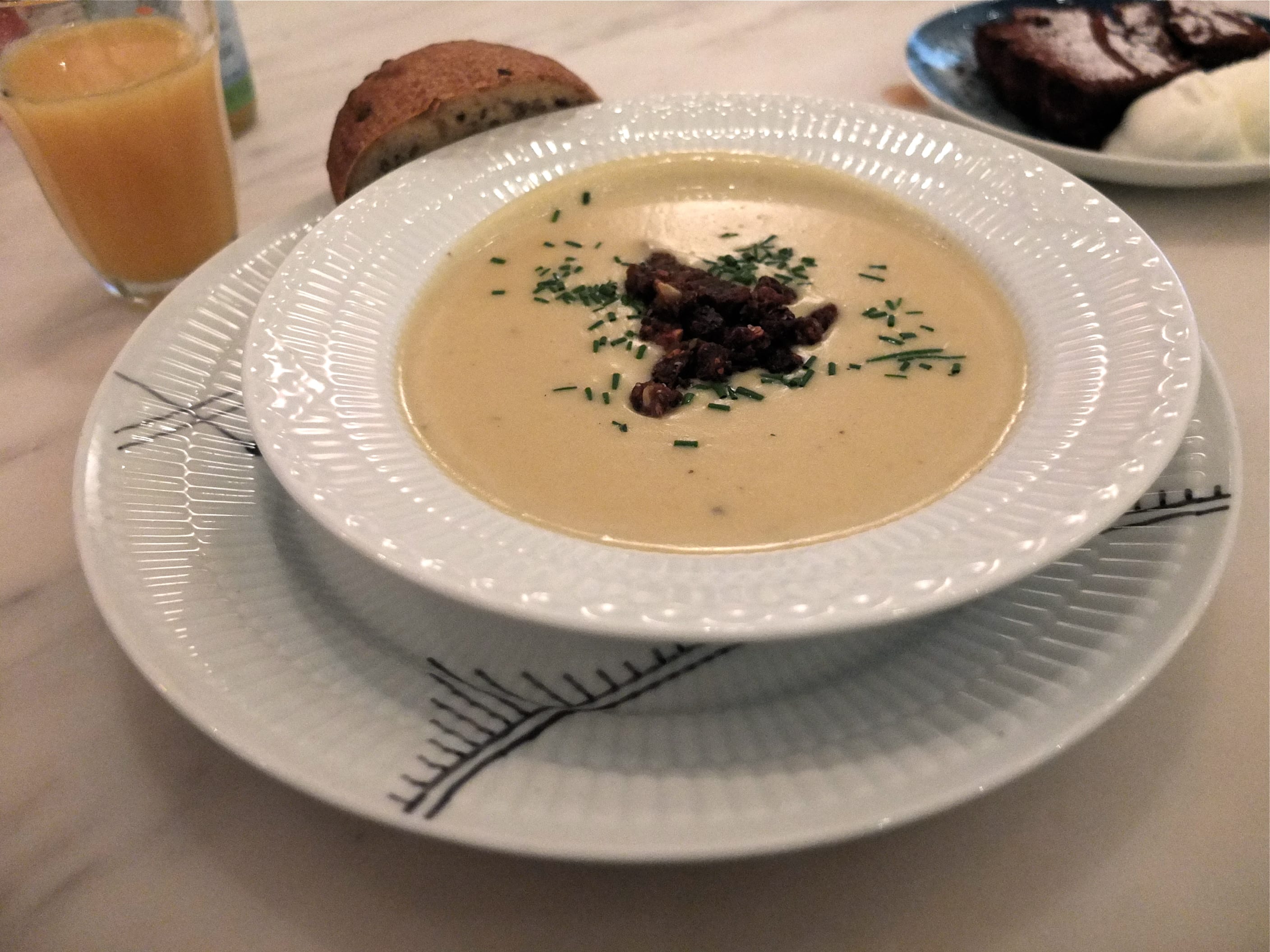 2) Le Royal Smushi Café (Amagertorv, 6) : girly, japonisant et en même temps très danois à la sauce royale ! Niché en arrière cours de la boutique/manufacture de porcelaine « Royal Copenhagen », ce café est cosy à souhait. On peut y déguster des « smushi » spécialités de la maison, personnellement j’ai préféré une soupe chaude dont j’aurai bien voulu la recette car SUCCULENTE. Alex a choisi le brunch maison qui l’a ravit aussi ! www.theroyalcafe.dk/
