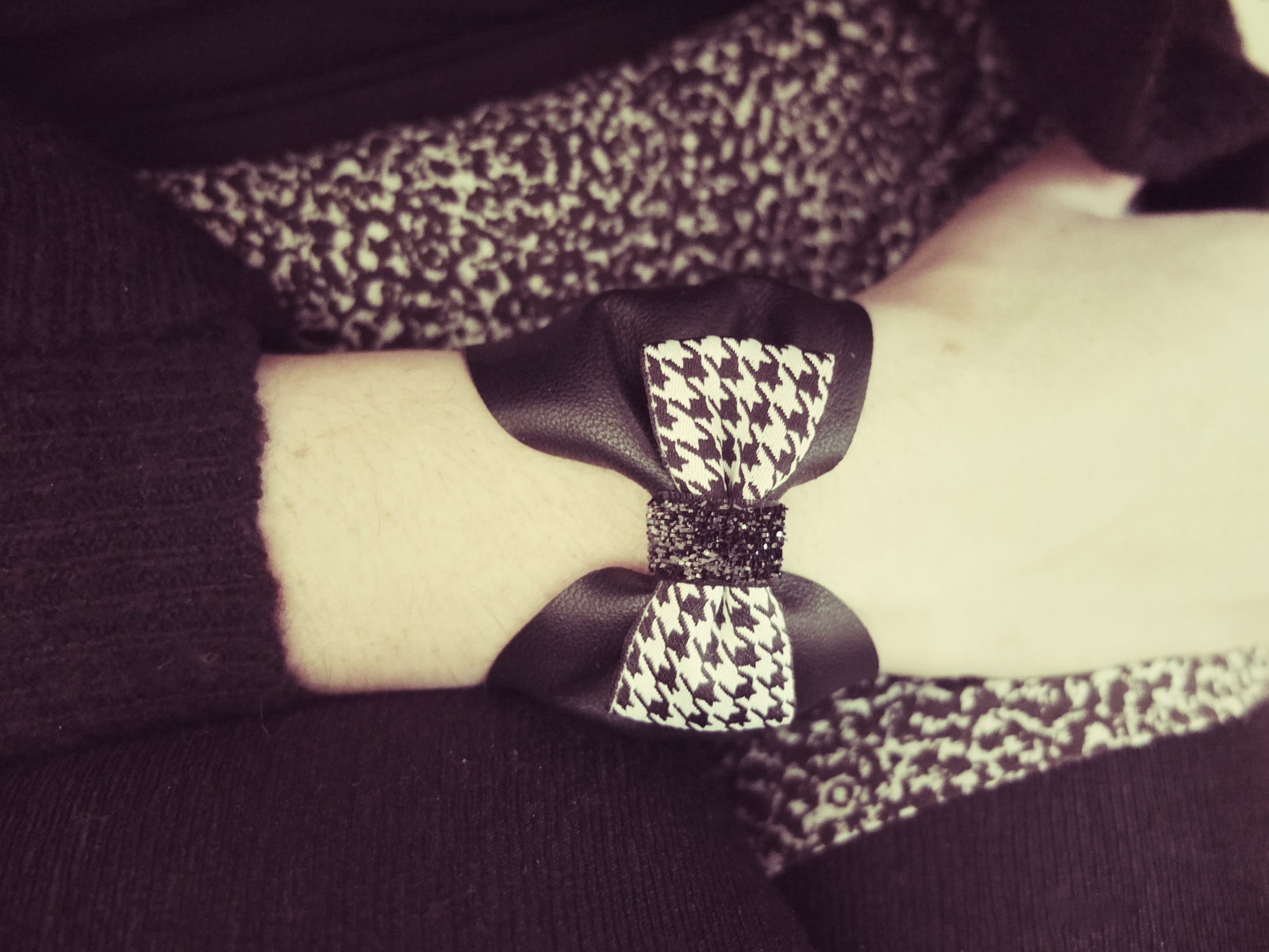 C’est ainsi qu’est née « Audacieuse », une manchette Little Madame x MPP dans un beau cuir noir, avec un petit noeud pied de poule (j’apprécie cet imprimé depuis toute petite) et rehaussé (bien évidemment il en fallait !) de paillettes noires. Nous sommes très heureuses de vous la présenter aujourd’hui et une manchette Audacieuse est à gagner ici-même. 3 autres blogueuses ont imaginé également des bijoux Little Madame dont ma douce Mathilda du blog Top Knot and Tea Cups, à découvrir ici. Alors êtes-vous audacieuse vous aussi ?!