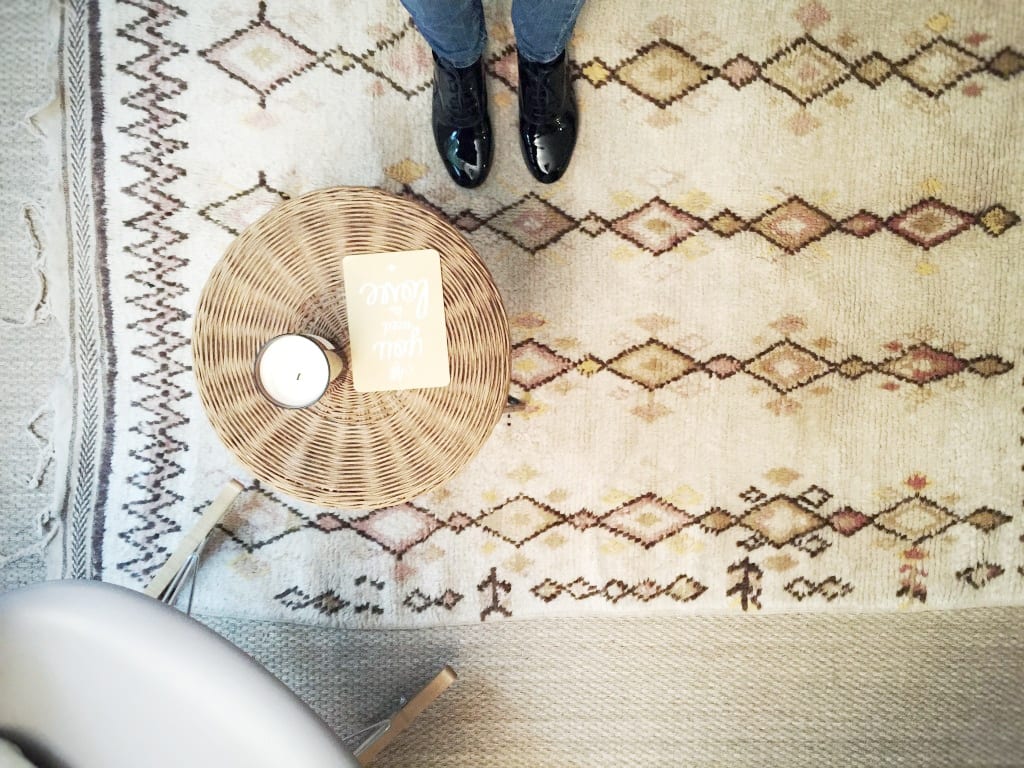 En décoration, les tapis donnent le ton ! Ils habillent, ils réchauffent, éclairent ou dynamisent n’importe quel espace. J’aime ce qu’ils représentent et quand ils ont une histoire. En recherchant un tapis azilal marocain, je suis tombée amoureuse de celui-ci sur le site de Secret Berbère. J’ai aimé ses tons de roses et ses pointes de jaune.