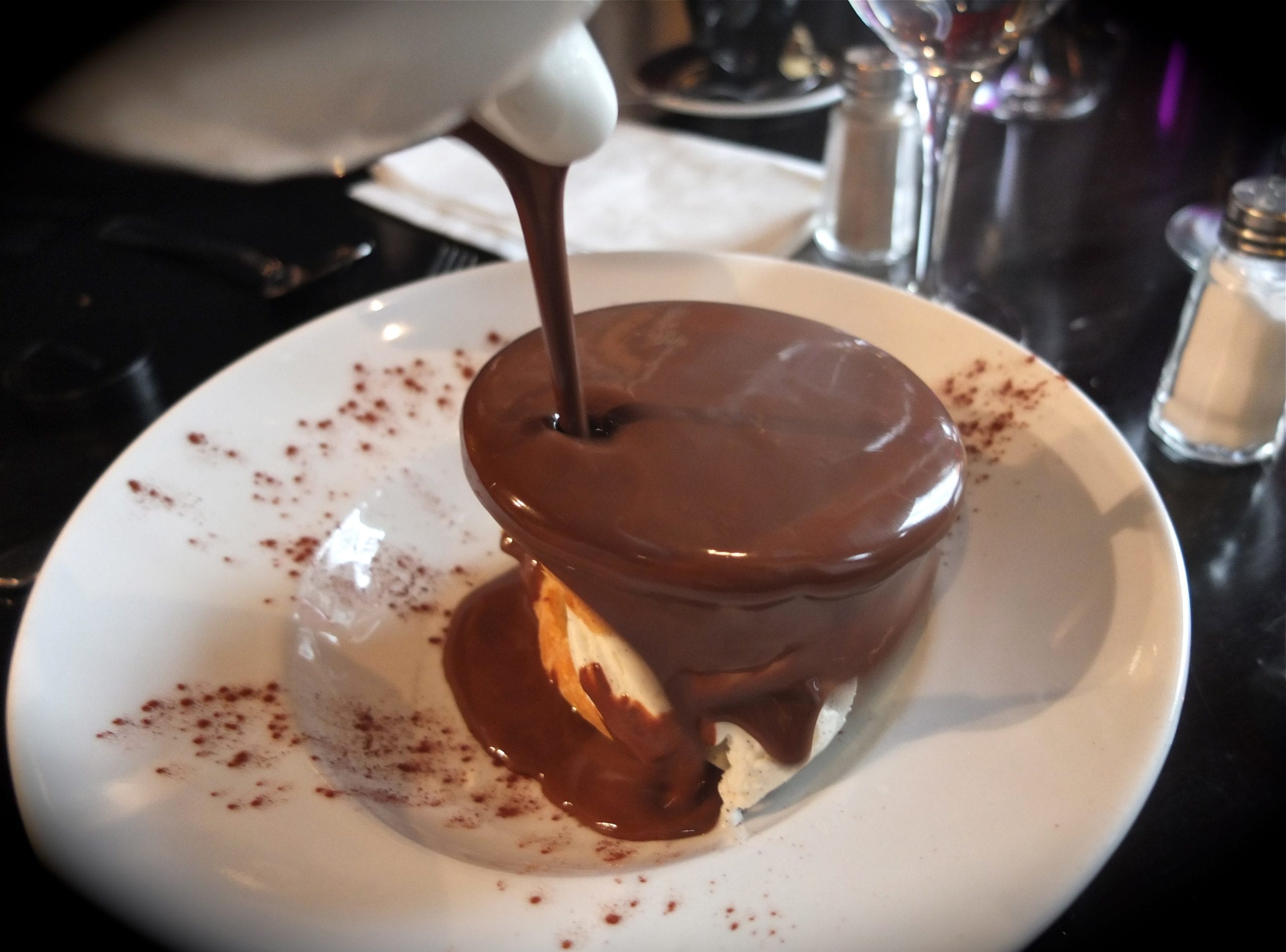 On vous amène l’assiette, un disque de cacao n’attend plus que de recevoir sur lui une douche de chocolat chaud … La Lancetta c’est ce petit resto italien cosy qui est parfait pour les déjeuners à deux et à deux pas du Bon Marché.