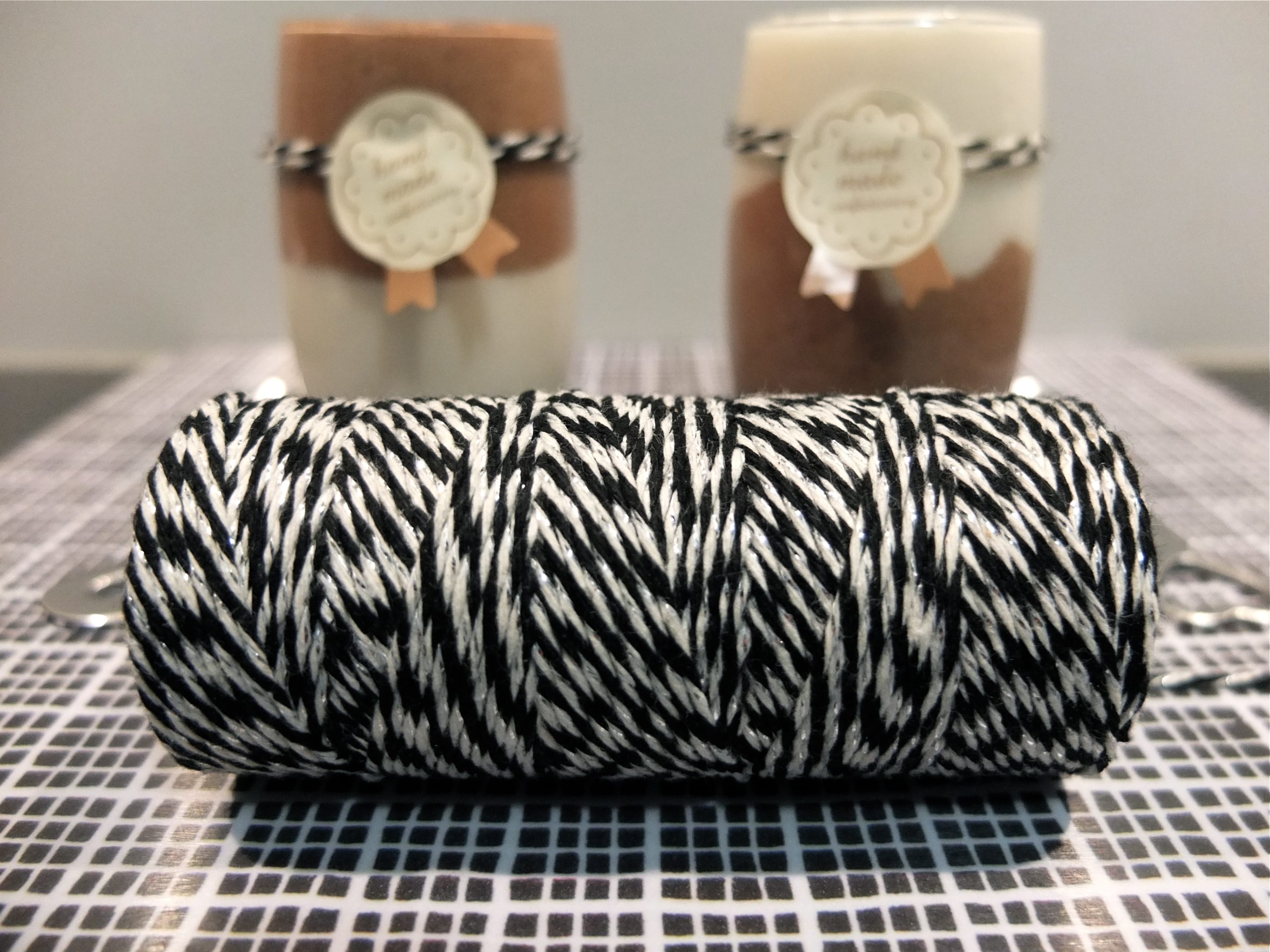 Ensuite avec de la ficelle Knot & Bow j’ai fait un double tour sur la verrine et j’ai collé un petit sticker « handmade » trouvé sur la boutique en ligne L’Epicerie des Filles.