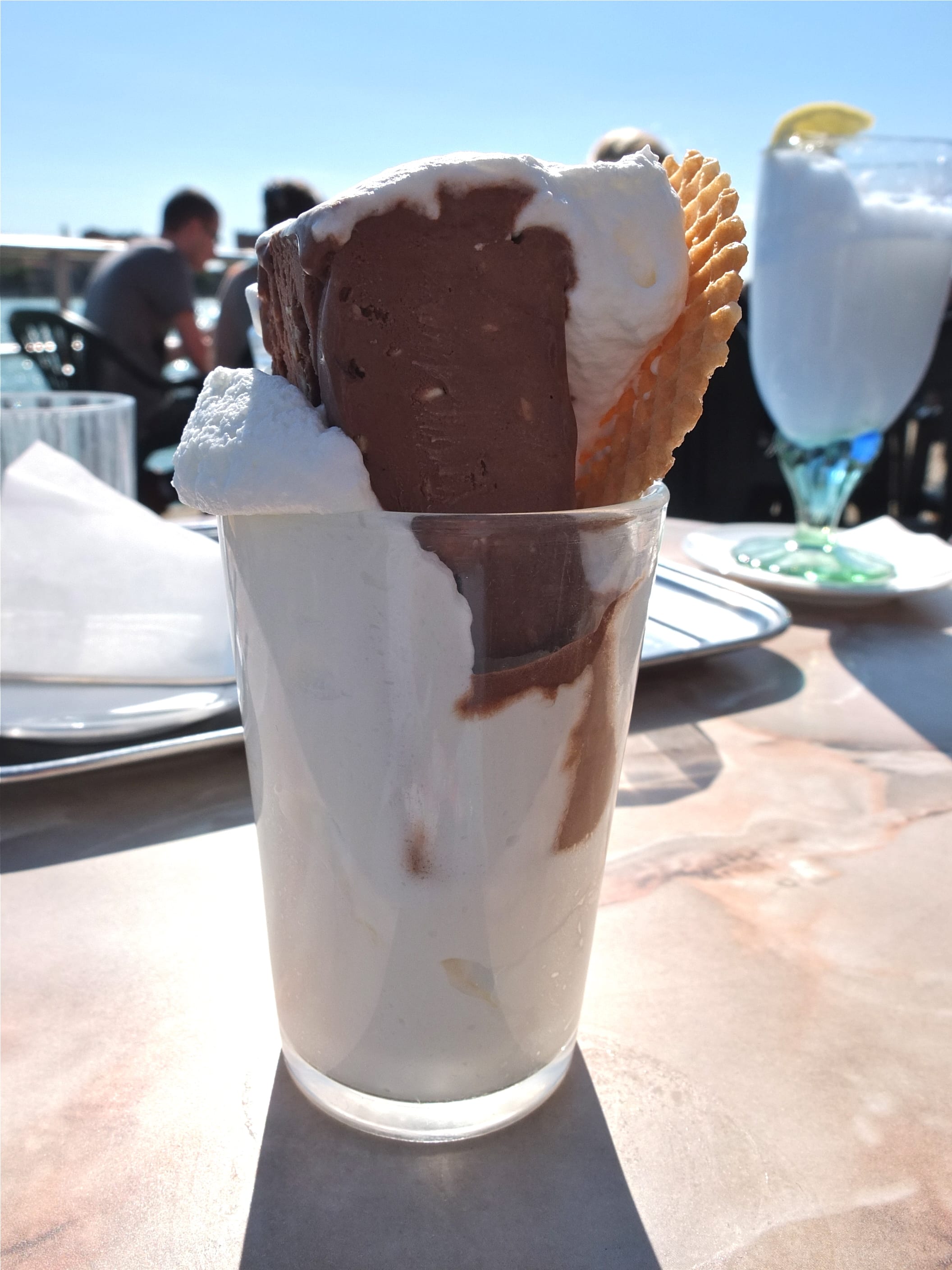 On s’installe au bord de l’eau en terrasse, j’ai même réussi à piquer un petit somme, il faut dire que ma glace était si légère !!