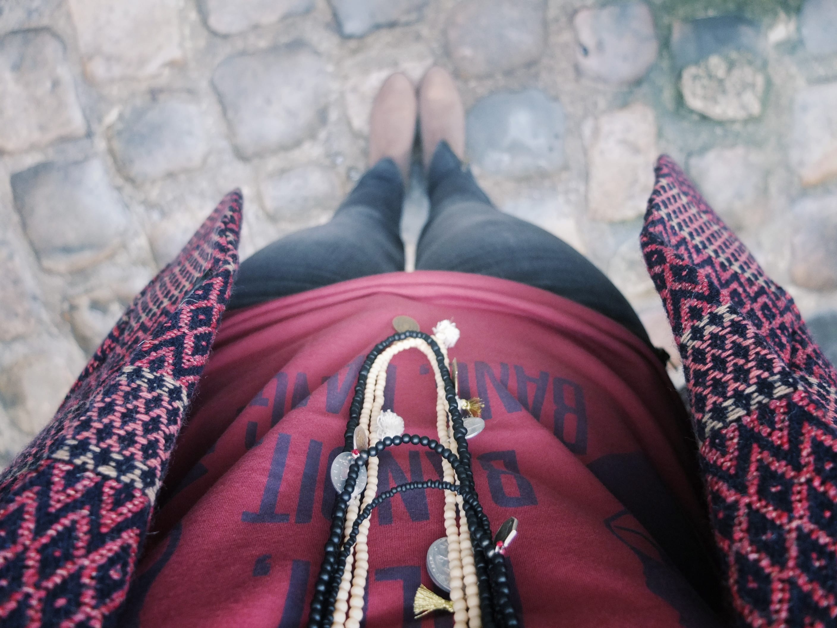 Le Bordeaux, c’est une de mes couleurs préférées pour l’automne. J’adore la veste avec le jean gris.