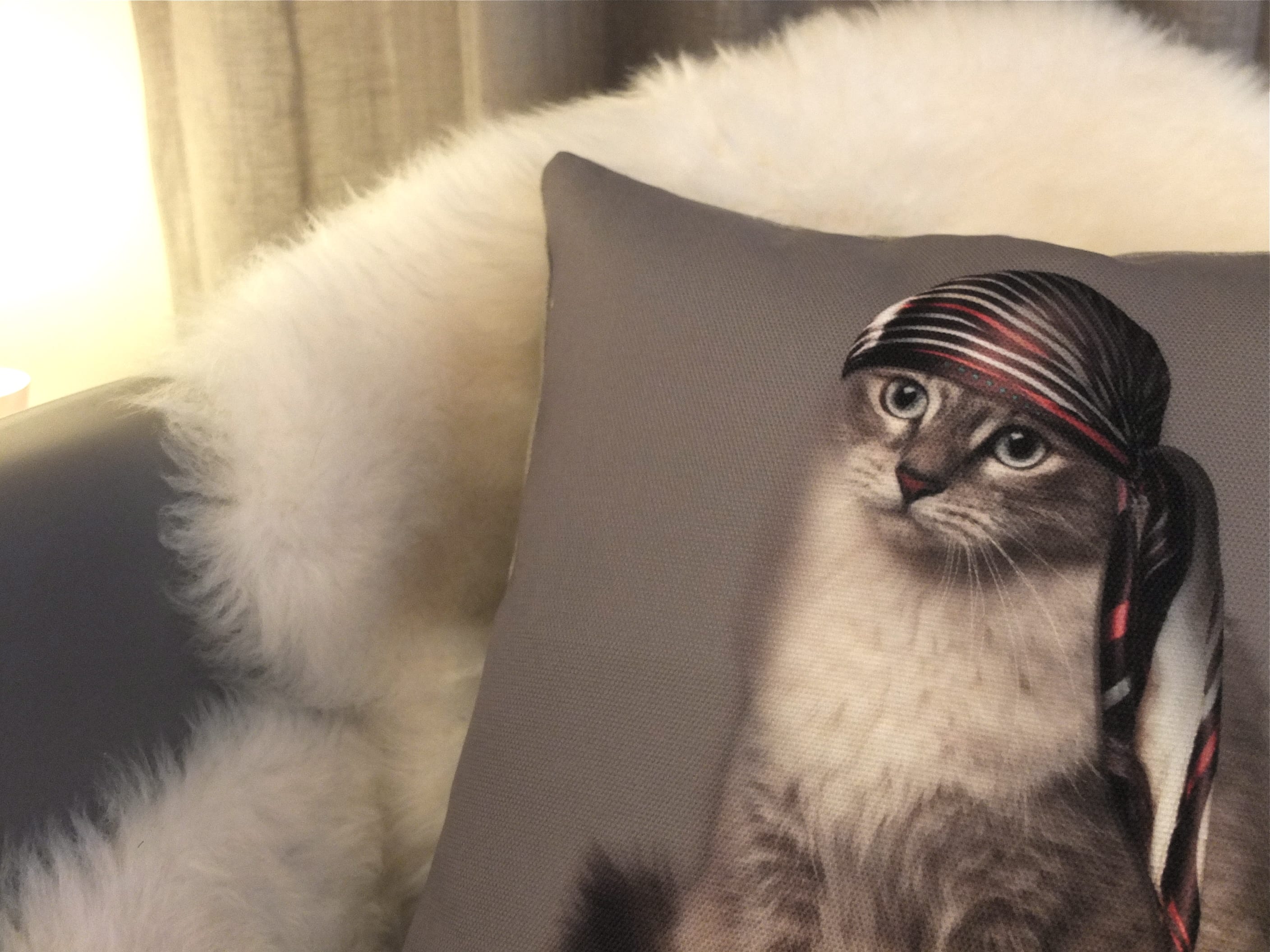 J’ai eu un coup de coeur pour le chat et son petit foulard façon pirate, n’est-il pas craquant ?! Enfin pour une fois, chien et chat font bon ménage !
