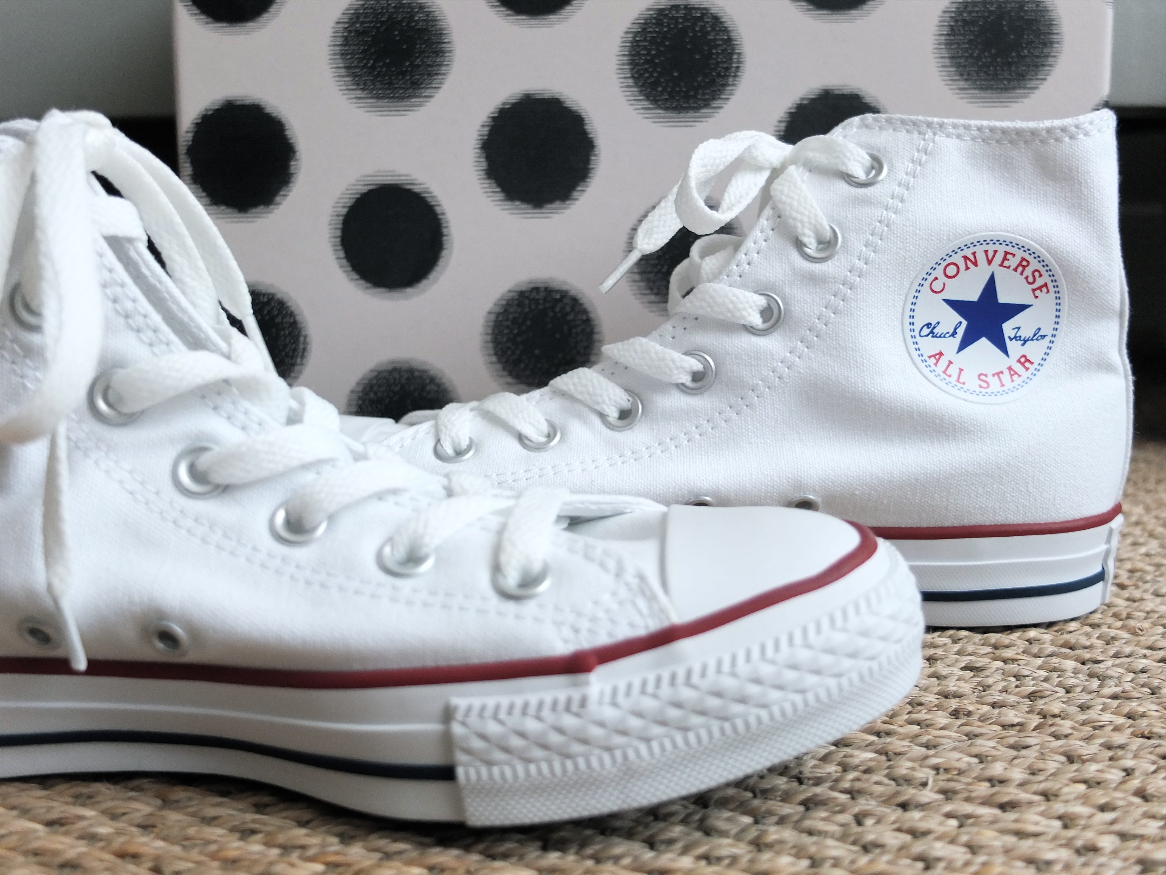 Une paire de Converse blanches (je ne compte plus les paires depuis l’adolescence !) tellement faciles à porter en jupe, short, pantalon. Cette étoile m’a toujours fascinée et