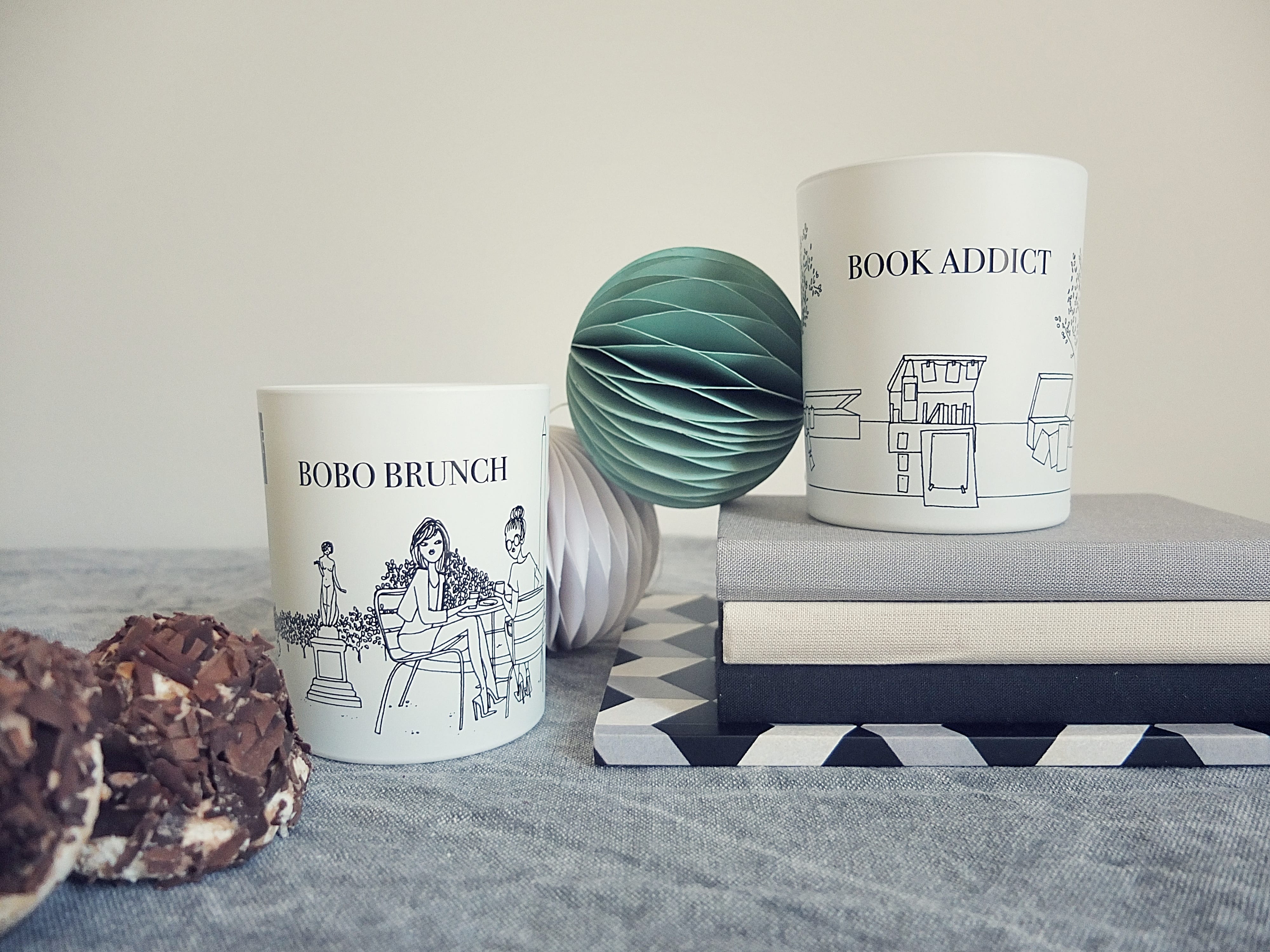 J’ai choisi pour vous les senteurs qui ressemblaient le plus à MPP à savoir Bobo Brunch pour le côté gourmand (un fond vanillé, saupoudré de notes pralinées et chocolatées… miam) et Book Addict pour ses notes boisées et son côté intérieur chic, intimiste.