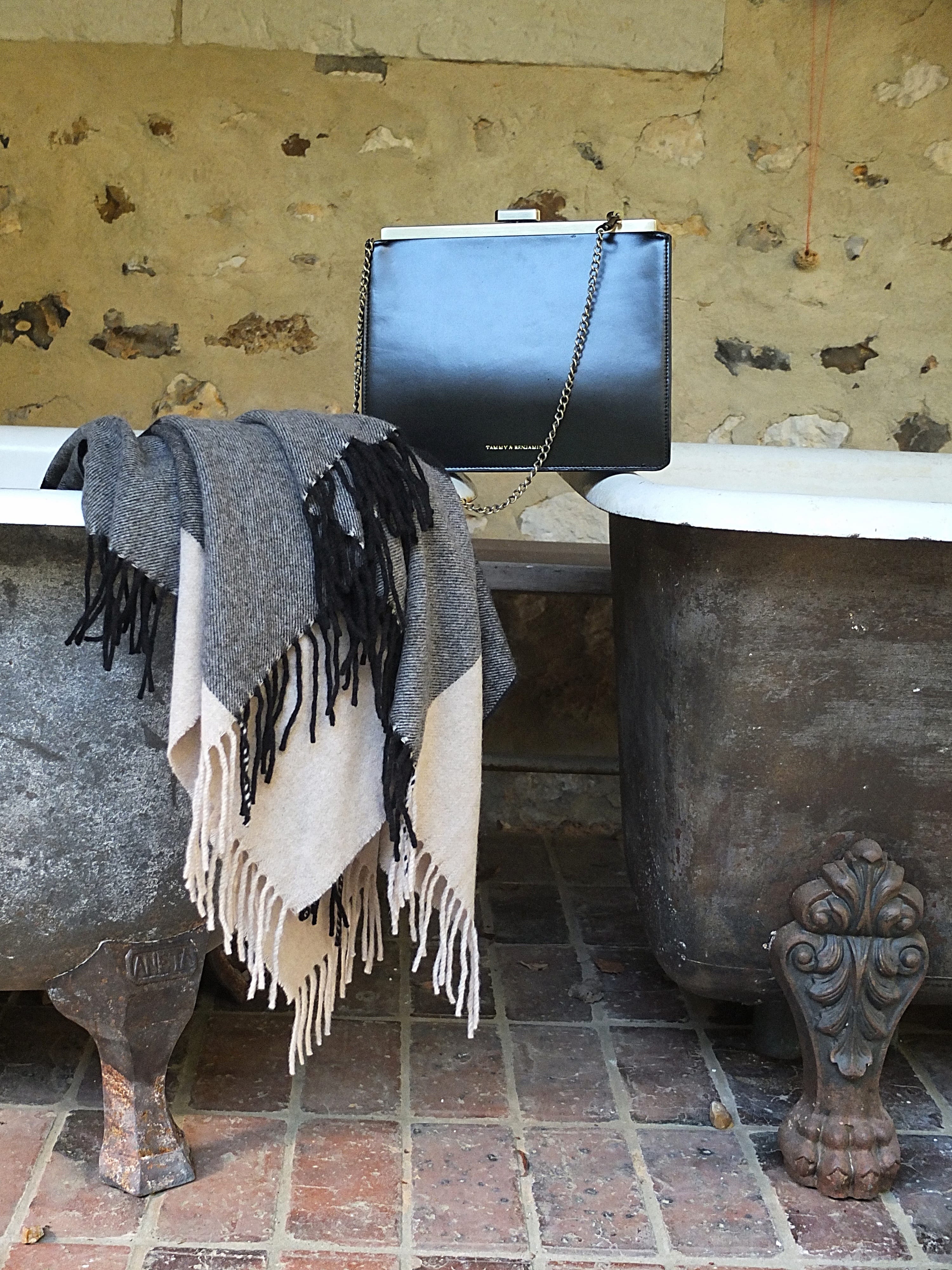 Très joli look et environnement, un gros crush sur le sac qui porte le prénom de ma grand-mère maternelle, j’adore, et j’avoue que je ne suis pas restée de marbre aussi sur tes boots et les baignoires, rien à voir mais quand on aime le beau, les yeux se portent partout et ce sont souvent les détails qui font tout. Je suivais déjà cette marque sur IG mais pas sur Facebook, c’est chose faite maintenant. Bonne soirée et merci pour ces jolies photos.
