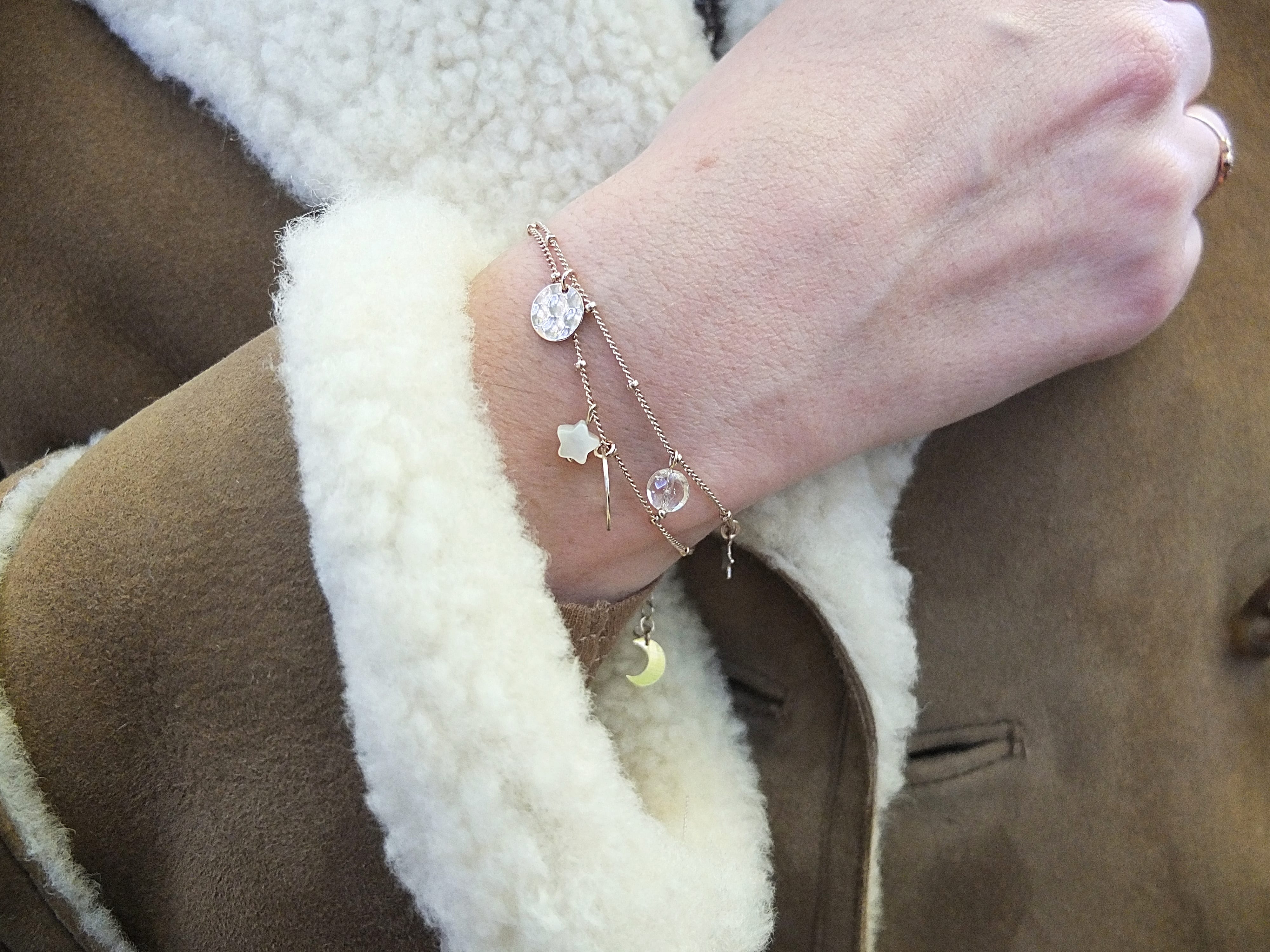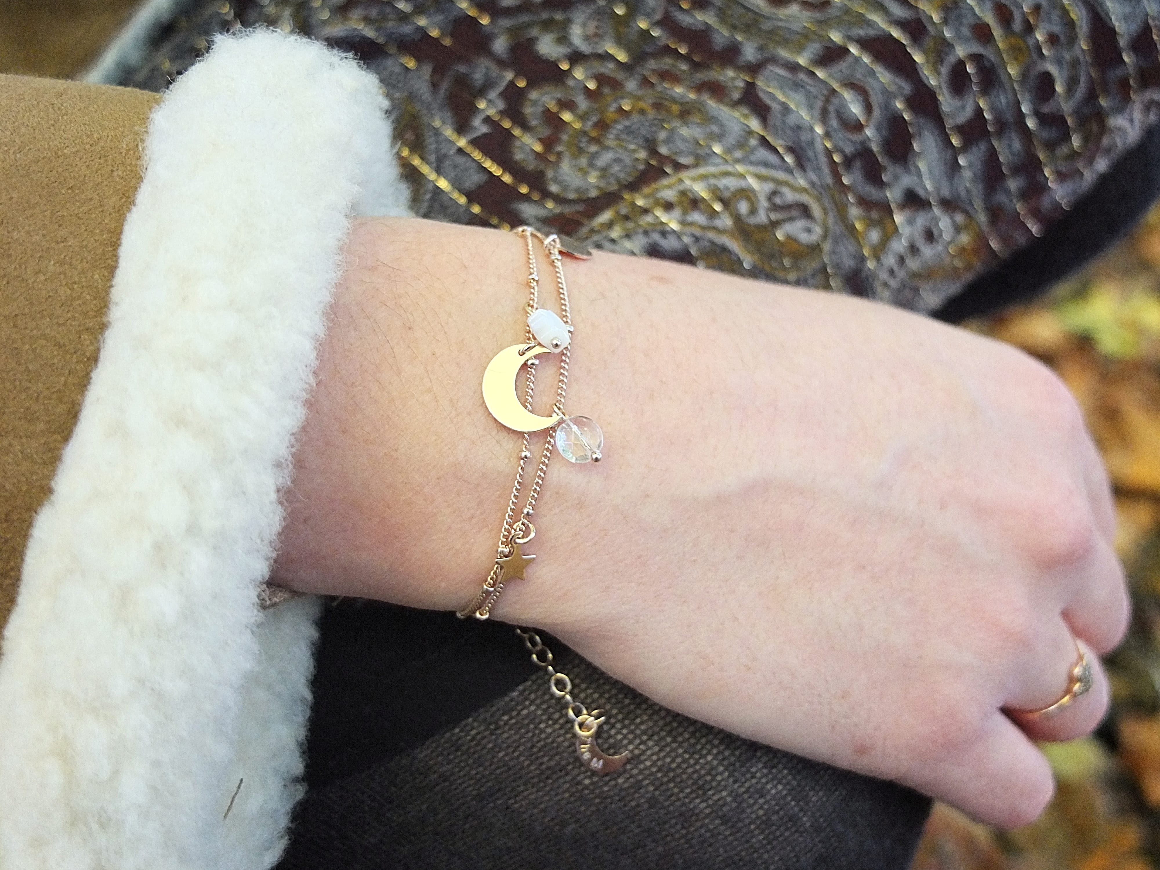 Je porte également un très joli bracelet imaginé par la douce Maï, créatrice de The Marceline Paris dont l’emblème est une adorable petite lune.
