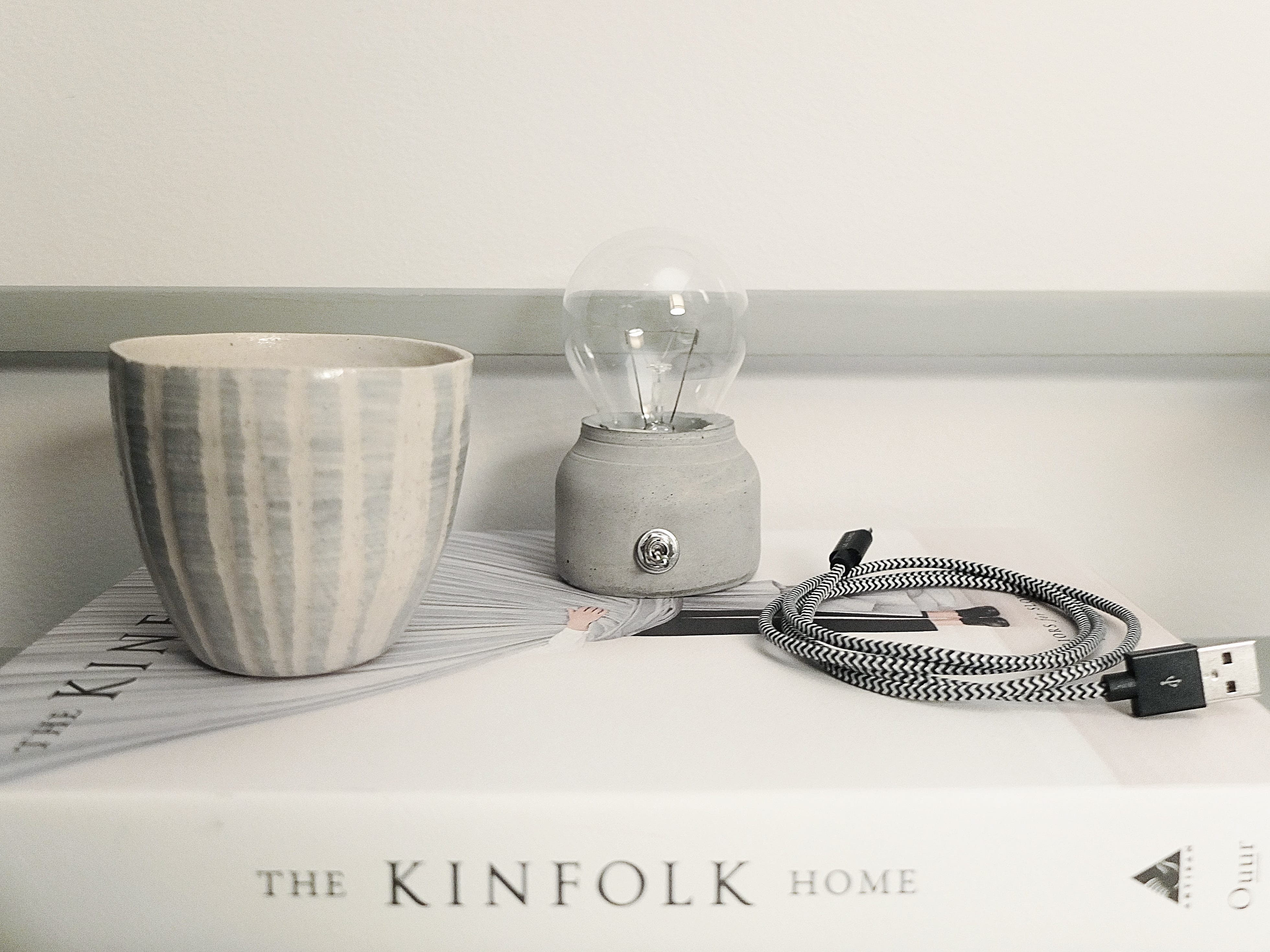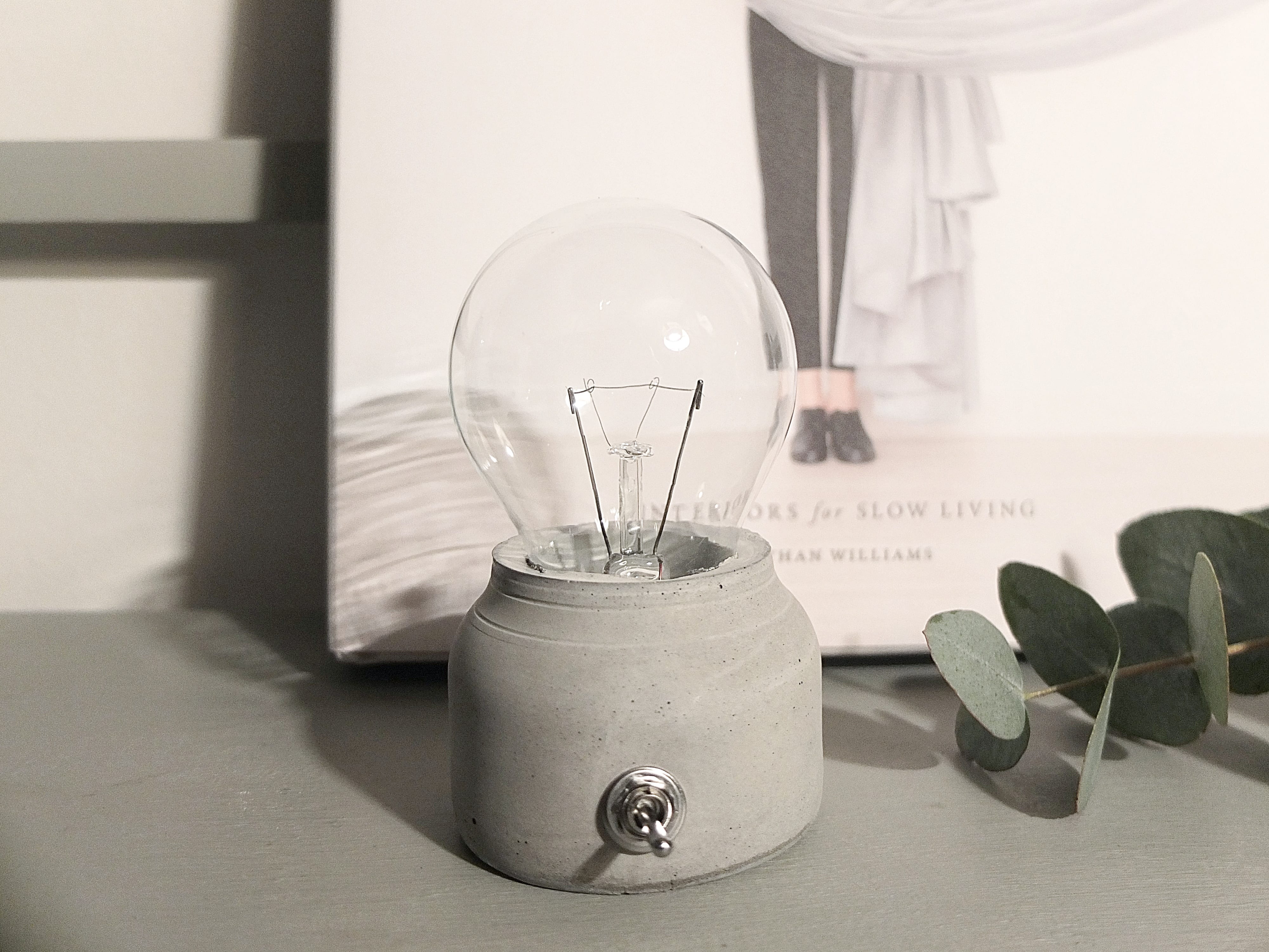 > la fameuse petite lampe en béton avec son ampoule led