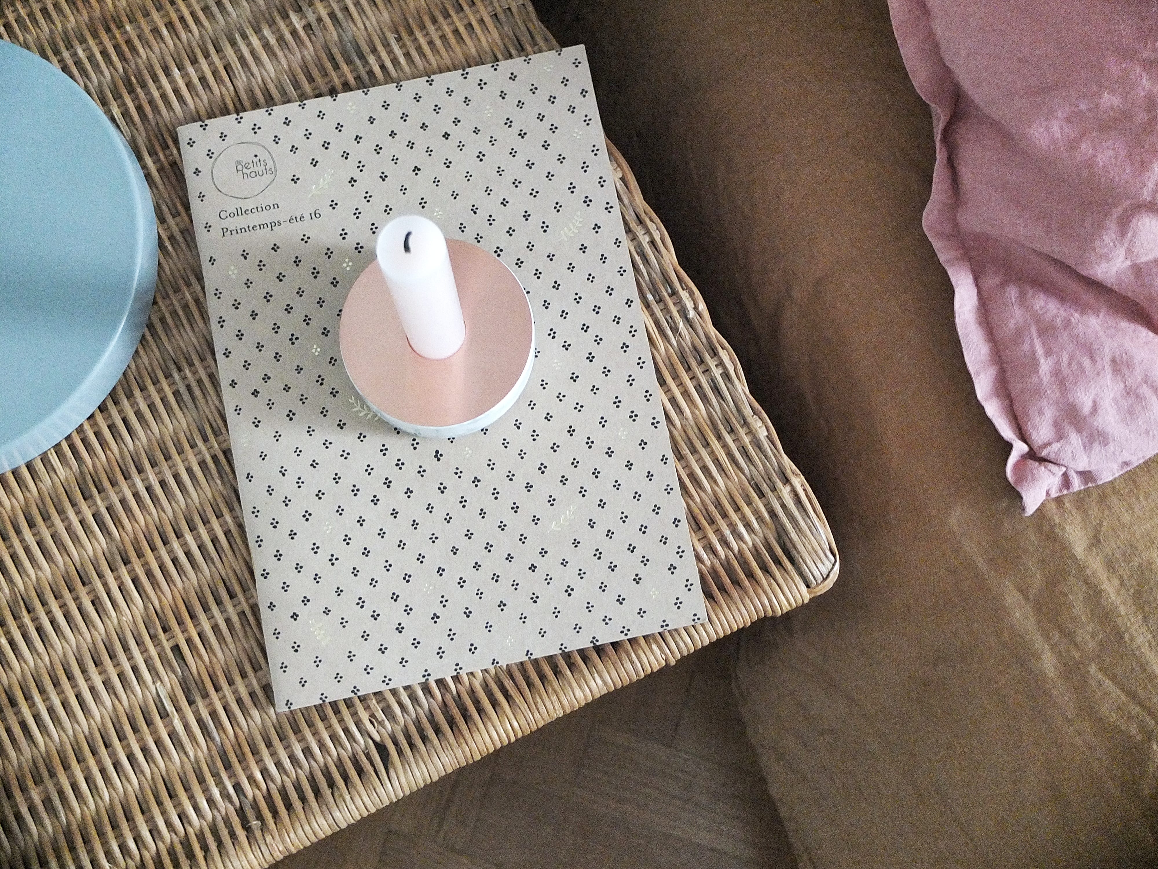 Gros coup de cœur pour l’univers poudré que m’inspire le plaid. Il me renvoie l’image de ma fille et je nous vois déjà lovées dans cette enveloppe de douceur !